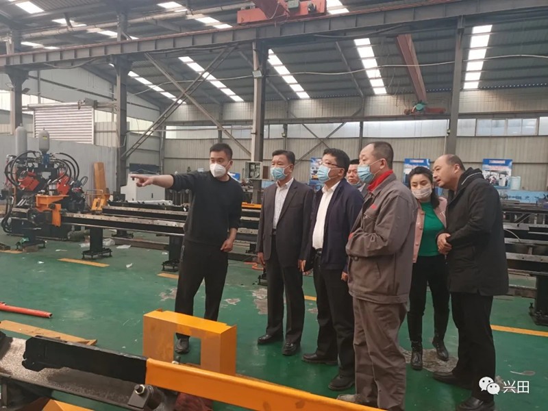 爾后,平陰縣領(lǐng)導(dǎo)一行來到公司工廠生產(chǎn)車間,現(xiàn)場(chǎng)考察了工廠的復(fù)工復(fù)產(chǎn)情況、員工到崗情況、技術(shù)研發(fā)情況和口罩機(jī)的研發(fā)生產(chǎn)情況。