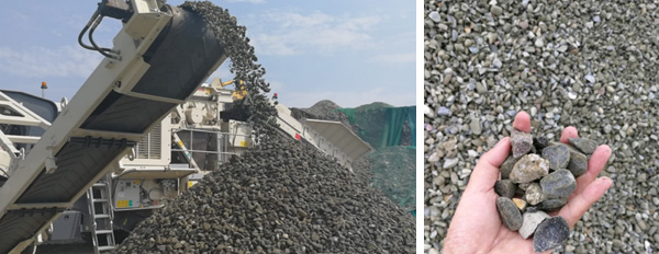 NFC1000RS,所生產(chǎn)的骨料成品中0-6mm成品料作為機(jī)制砂,6-31.5mm成品料作為建筑粗骨料。
