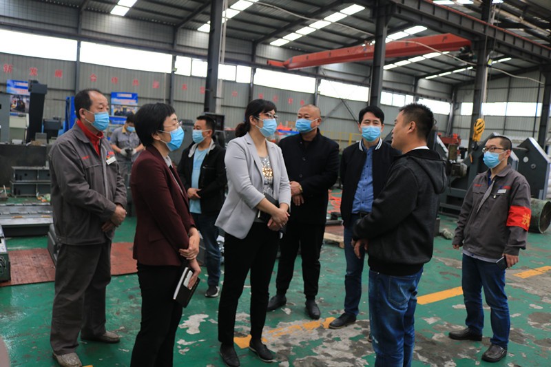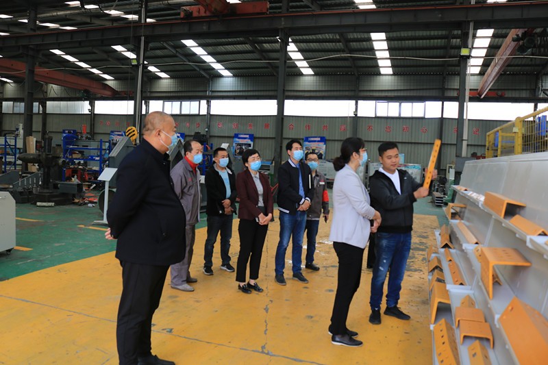 逯明書(shū)記一行首先來(lái)到了生產(chǎn)車(chē)間,現(xiàn)場(chǎng)考察企業(yè)在常態(tài)化疫情防控下的復(fù)工復(fù)產(chǎn)情況和面臨的困難。在裝配調(diào)試區(qū),逯書(shū)記詳細(xì)了解了一拖二全自動(dòng)口罩機(jī)、高速數(shù)控角鋼鉆孔生產(chǎn)線、新型高速數(shù)控角鋼沖孔打字剪切生產(chǎn)線等設(shè)備的裝配調(diào)試情況和生產(chǎn)過(guò)程中遇到的困難。