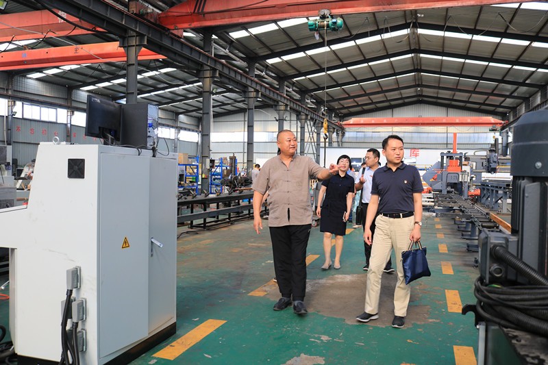 7月7日下午,濟(jì)南市人社局社?;鸨O(jiān)管處處長(zhǎng)董文、濟(jì)南市委機(jī)要保密局法規(guī)宣傳處副處長(zhǎng)張克亞等市疫情處置工作黨建保障巡回督導(dǎo)工作組領(lǐng)導(dǎo)一行,蒞臨我公司調(diào)研指導(dǎo)常態(tài)化疫情防控工作和企業(yè)復(fù)工復(fù)產(chǎn)工作,濟(jì)南市槐蔭區(qū)玉清湖街道黨工委副書(shū)記、人大工作室主任牛國(guó)蕾,黨建工作辦公室副主任李偉偉陪同。公司董事長(zhǎng)徐福厚、總經(jīng)理徐鵬、黨支部書(shū)記兼生產(chǎn)副總孔祥健、董事會(huì)秘書(shū)兼辦公室主任王德華熱情接待了董文處長(zhǎng)一行。